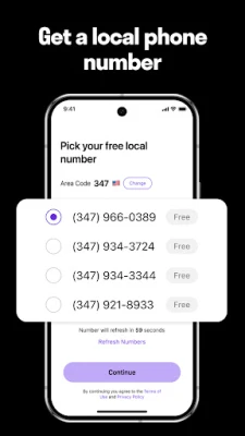 • Get a free local phone number or keep your own for a private second line or business use.
